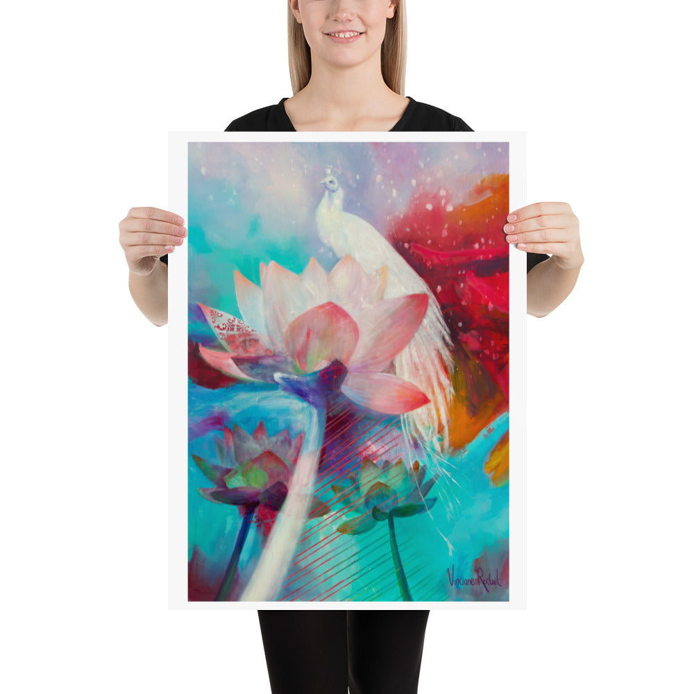 "Royaume de lumière " est le titre de cette affiche murale avec l'intention de " Entrer dans le jardin des splendeurs. Ce jardin intérieur dont nous avons pris soins pendant des années."